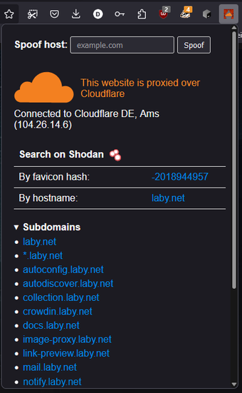 Ekstensi ini menawarkan fitur tambahan yang menarik, seperti hashing favicon dari halaman saat ini dan melakukan pencarian di Shodan. Dengan memanfaatkan pustaka MurmurHash3, pengguna dapat melakukan analisis mendalam terhadap favicon situs. Dengan berbagai fitur ini, Behind the Curtain menjadi alat yang berguna bagi pengembang web dan profesional TI yang ingin menjelajahi lebih jauh tentang infrastruktur situs yang mereka analisis.
